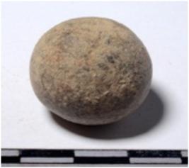 | Description / विवरण | A stone sling ball round in shape of rough surface. |