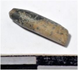| Description / विवरण | A fragment of a stone drill bit circular in section, broken from both end of smooth surface. |