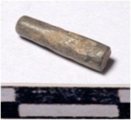 | Description / विवरण | A fragment of a stone drill bit circular in section broken from both end of smooth surface. |