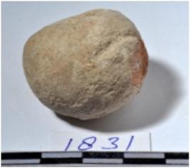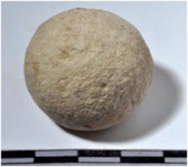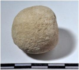 | Description / विवरण | A terracotta sling ball round in shape of smooth surface. |