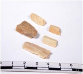 | Description / विवरण | A fragment of a rectangular shaped chert blade showing dorsal sides with sharp edges having smooth surface and triangular section. |