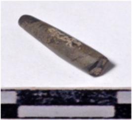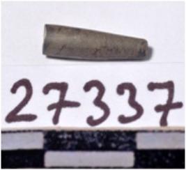 | Description / विवरण | A fragment of a stone drill bit, circular in section, broken from one end of smooth surface. |