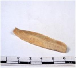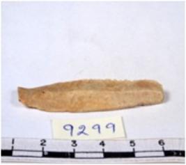 | Description / विवरण | A fragment of a rectangular shaped chert blade showing dorsal sides with sharp edges having smooth surface and triangular section. |