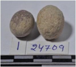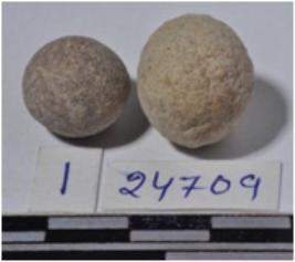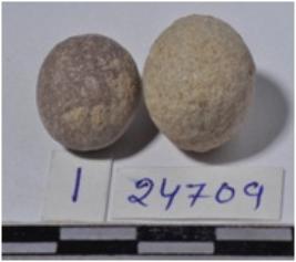 | Description / विवरण | A stone sling ball round in shape of rough surface. |
