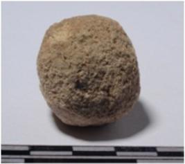 | Description / विवरण | A stone sling ball round in shape of rough surface. |