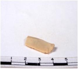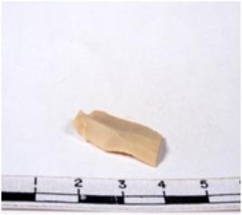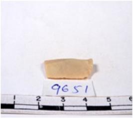 | Description / विवरण | A fragment of a rectangular shaped chert blade showing dorsal sides with sharp cutting edges having smooth surface and triangular section. |