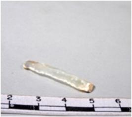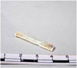 | Description / विवरण | A fragment of a rectangular shaped chalcedony blade showing dorsal sides with sharp edges having smooth surface and triangular section. |