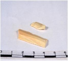 | Description / विवरण | A fragment of a rectangular shaped chert blade showing dorsal sides with sharp edges having smooth surface and triangular section. |