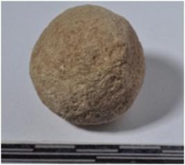 | Description / विवरण | A stone sling ball round in shape of rough surface. |