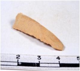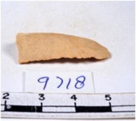 | Description / विवरण | A fragment of a rectangular shaped chert blade showing dorsal sides with sharp cutting edges having smooth surface and triangular section. |