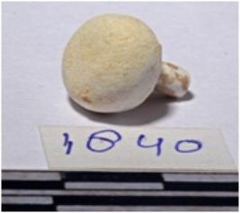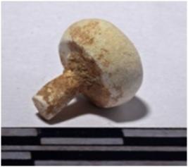 | Description / विवरण | A fragment of a steatite stopper showing round head top, tubular stem of fine surface. |