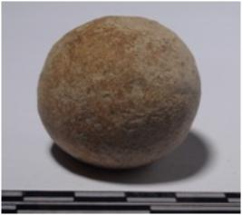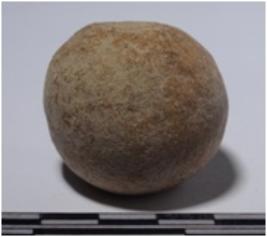 | Description / विवरण | A stone sling ball round in shape of smooth surface. |