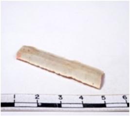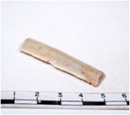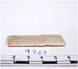| Description / विवरण | A fragment of a rectangular shaped chert blade showing dorsal sides with sharp edges having smooth surface and triangular section. |