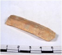 | Description / विवरण | A fragment of a rectangular shaped chert blade showing dorsal sides with sharp edges having smooth surface and triangular section. |