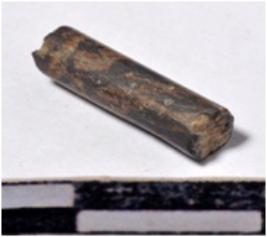 | Description / विवरण | A fragment of a stone drill bit, circular in section broken both end of smooth surface. |