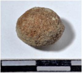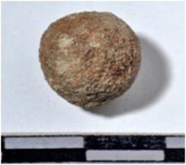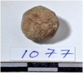 | Description / विवरण | A terracotta sling ball round in shape of smooth surface. |