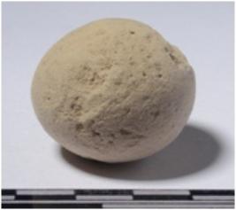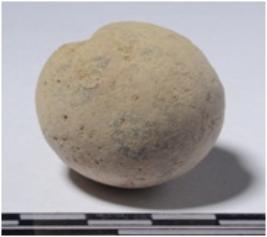 | Description / विवरण | A stone sling ball, round in shape of rough surface. |