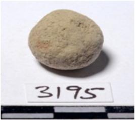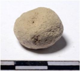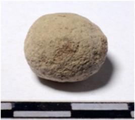 | Description / विवरण | A terracotta sling ball round in shape of rough surface. |