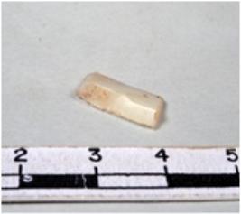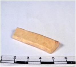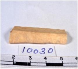 | Description / विवरण | A fragment of a rectangular shaped chert blade showing dorsal sides with sharp cutting edges having smooth surface and triangular section. |