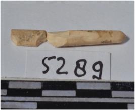 | Description / विवरण | A fragment of a bone point, broken both end, circular in section and smooth surface. |