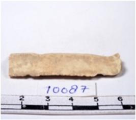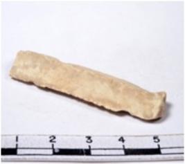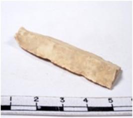 | Description / विवरण | A fragment of a rectangular shaped chert blade showing dorsal sides with sharp edges having smooth surface and triangular section. |
