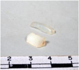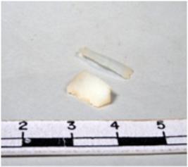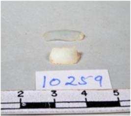 | Description / विवरण | A fragment of a rectangular shaped chert blade showing dorsal sides with sharp edges having smooth surface and triangular section. |