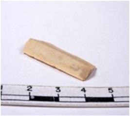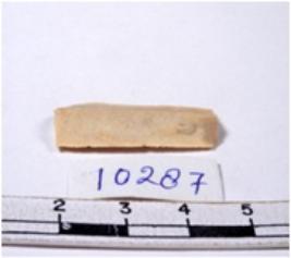 | Description / विवरण | A fragment of a rectangular shaped chert blade showing dorsal sides with sharp edges having smooth surface and triangular section. |