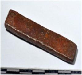| Description / विवरण | A copper chisel rectangular in shape sharp at one end of rough surface. |