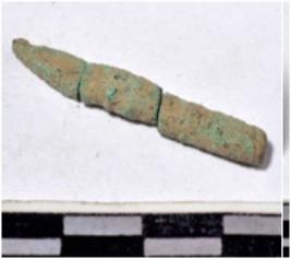 | Description / विवरण | A fragment of a copper point square in section, pointed one end of rough surface. |
