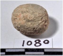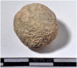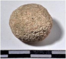 | Description / विवरण | A stone sling ball, round in shape of rough surface. |