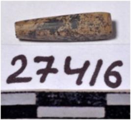 | Description / विवरण | A fragment of a stone drill bit, circular in section, broken from both end of smooth surface. |