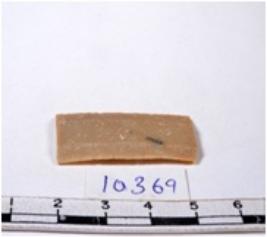 | Description / विवरण | A fragment of a rectangular shaped chert blade showing parallel sides with sharp edges having smooth surface and uneven section. |