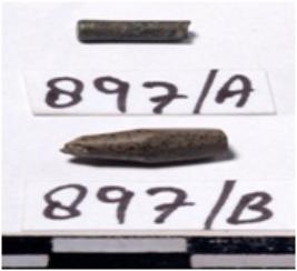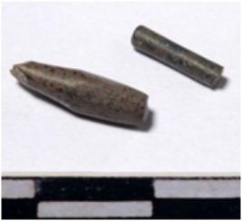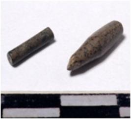 | Description / विवरण | A fragment of a stone drill bit circular in section broken from both end of smooth surface. |
