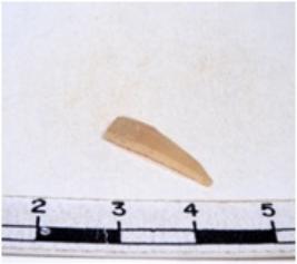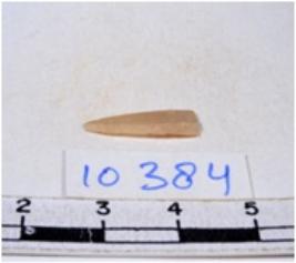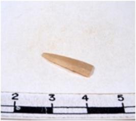 | Description / विवरण | A fragment of a rectangular shaped chert blade showing dorsal sides with sharp cutting edges having smooth surface and triangular section. |