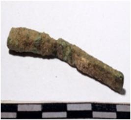 | Description / विवरण | A fragment of a copper chisel, sharpened one end, circular in section of rough surface. |