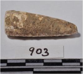 | Description / विवरण | A clay point, cylindrical in shape pointed one end, circular in section of rough surface. |