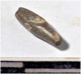 | Description / विवरण | A fragment of a stone bit, circular in section, broken from one end of smooth surface. |