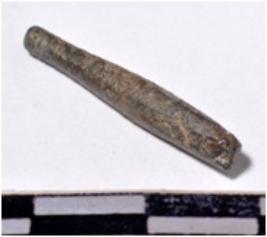 | Description / विवरण | A fragment of a stone drill bit, circular in section broken both end of smooth surface. |