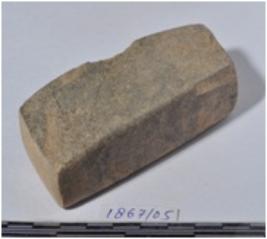 | Description / विवरण | A stone sharpner rectangular in shape and section of smooth surface. |
