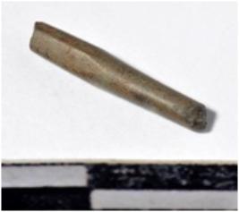| Description / विवरण | A fragment of a stone drill bit, broken from one end, circular in section of smooth surface. |
