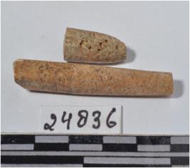 | Description / विवरण | A fragment of a bone point, broken both end, circular in section and smooth surface. |