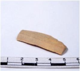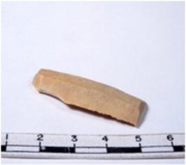 | Description / विवरण | A fragment of a rectangular shaped chert blade showing dorsal sides with sharp edges having smooth surface and triangular section. |