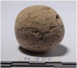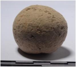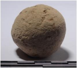 | Description / विवरण | A stone sling ball round in shape of rough surface. |
