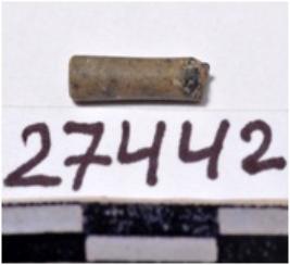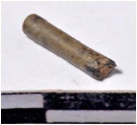 | Description / विवरण | A fragment of a stone drill bit, circular in section broken from one end of smooth surface. |