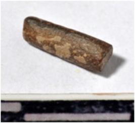 | Description / विवरण | A fragment of a stone drill bit, circular in section, broken from both ends of smooth surface. |