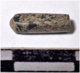 | Description / विवरण | A fragment of a stone drill bit, circular in section, broken from both end of smooth surface. |