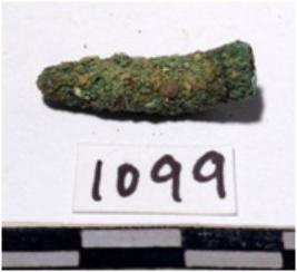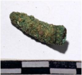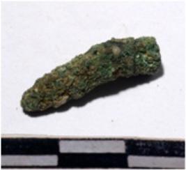| Description / विवरण | A fragment of a copper nail, broken head, pointed one end of rough surface. |