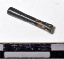 | Description / विवरण | A fragment of a stone drill bit, circular in section, broken from one end of smooth surface. |