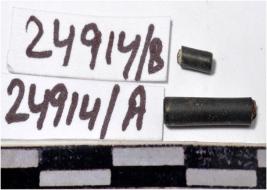 | Description / विवरण | A fragment of a stone drill bit, circular in section, broken from both end of smooth surface. |