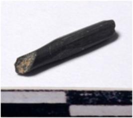 | Description / विवरण | A fragment of a stone drill bit circular in section pointed on one end of smooth surface. |